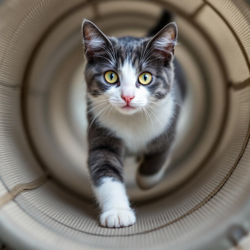 Bella is pure energy wrapped in a grey and white tuxedo coat! She's always ready to play, always running at full speed, and brings endless entertainment to the family. Her athletic build matches her adventurous spirit.