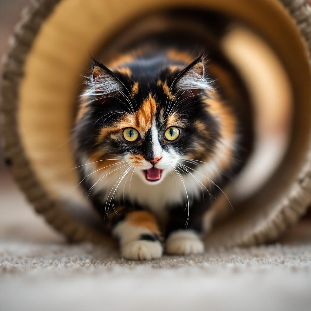 Calico blur through the tunnel!